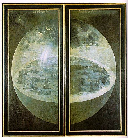 Per analizzare l’opera bisogna partire dalle ante esterne, che, una volta chiuse, lasciano spazio a un’importante illustrazione: Bosch rappresenta in grisaglia il Terzo Giorno della Creazione, quando, secondo le Sacre Scritture, le acque furono separate dalla terra e il Paradiso terrestre fu creato. Un mondo ancora incompiuto è l’immagine perfetta per raffigurare visivamente l’innocenza, l’assenza di vita e con essa l’assenza di colpa.